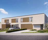 - Drie stijlvolle woningen aan de straatzijde – twee halfopen en één gesloten bebouwing – telkens met twee bouwlagen, een moderne uitstraling en percelen van ca. 425 m².