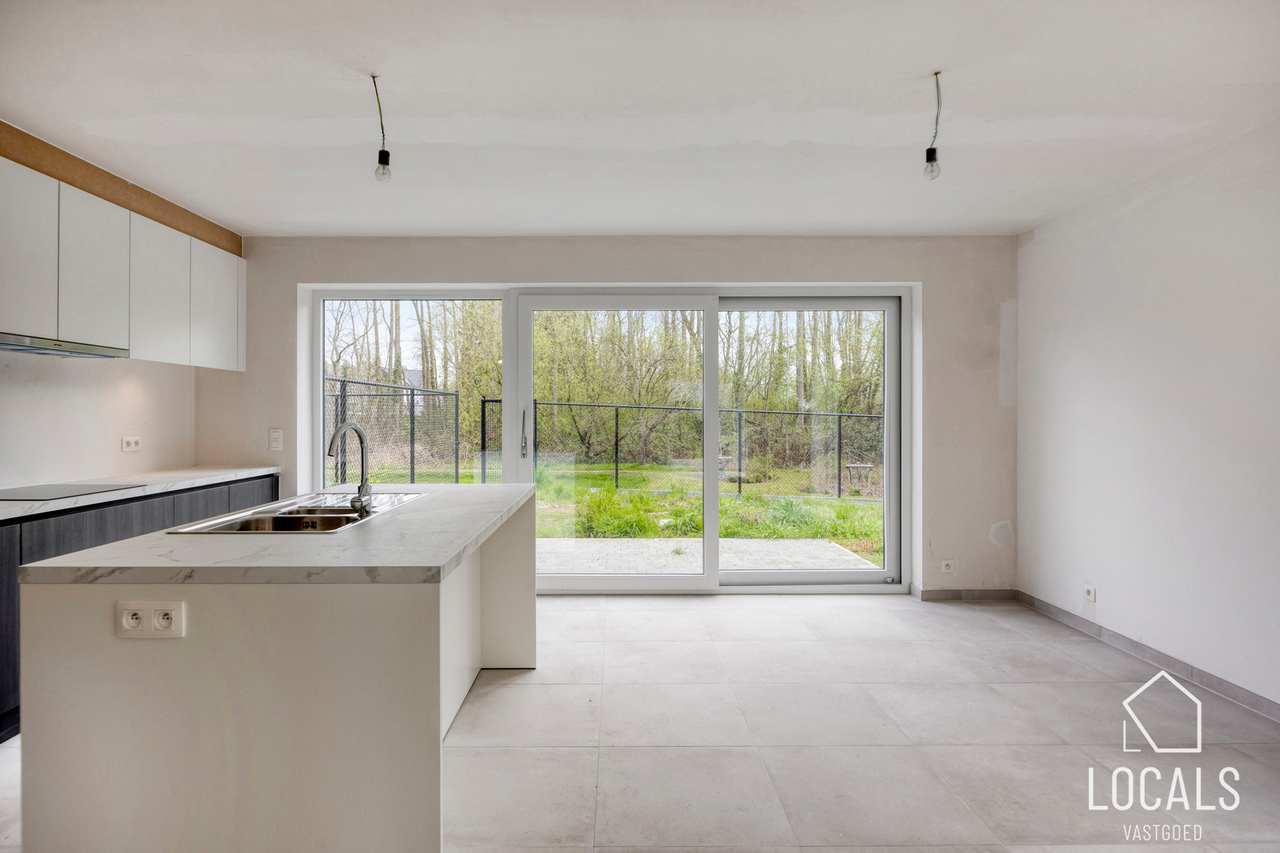 Op de gelijkvloerse verdieping geniet je van een open en lichtrijke leefruimte met geïntegreerde keuken en een gezellige zithoek. Daarnaast is er een praktische, afzonderlijke berging voorzien.