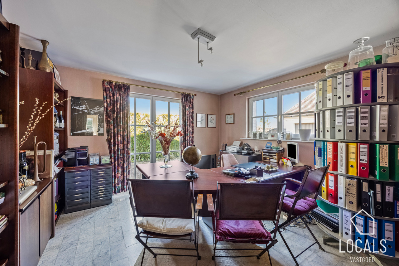 Uitstekend onderhouden villa met een bruto bewoonbare oppervlakte van 267,5m². De dubbele garage, zolder hoofdgebouw, zolder garage, tuinkamer, serre en “man cave” werden nog niet meegerekend in deze bewoonbare oppervlakte. Optimaal gelegen in een zeer rustige residentiële straat aan het bos.